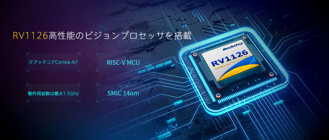 | NPU | 8bit/16bit対応、TensorFlow、TensorFlow lite、Pytorch、Caffe、Mxnet、 Darknet、Onnx対応、 演算性能は最大2.0TOPs |