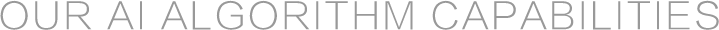 顔認識のアルゴリズム、音声認識のアルゴリズム、異常行動検知のアルゴリズム、禁止物検知のアルゴリズム、ドローン目標検出アルゴリズム、ロボットの目標検出アルゴリズムなど